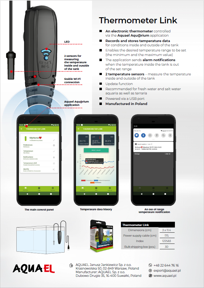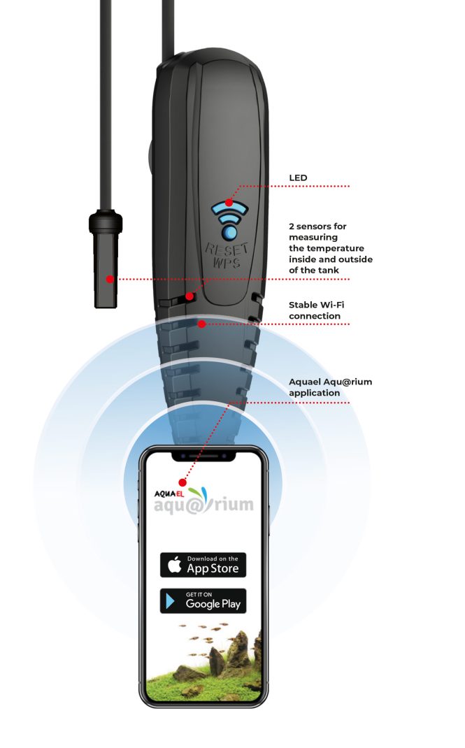 • An electronic thermometer controlled via the Aquael Aqu@rium application