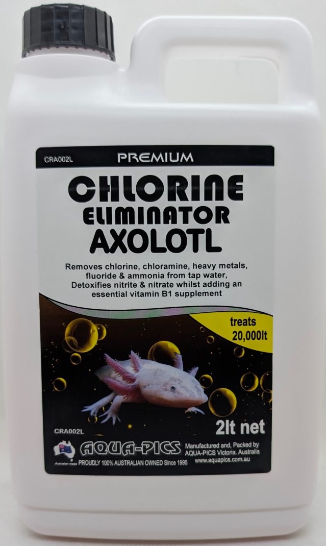 This product is for removing chlorine, chloramine and ammonia from tap water. It also binds up fluoride and heavy metals and adds vitamin B1 to protect your axolotl. 2lt treats 20000lt