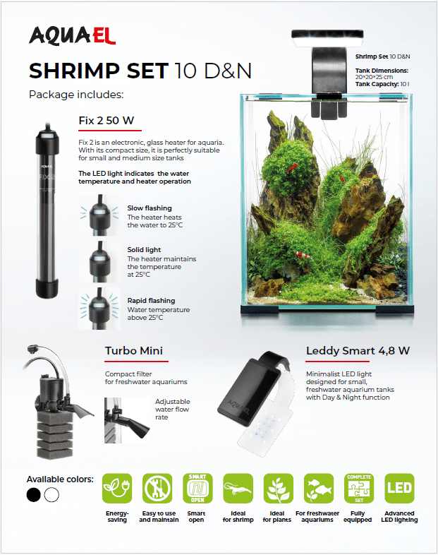 The Aquael Shrimp Set Day & Night Aquarium Sets are designed specifically for shrimp keepers and small planted aquariums.