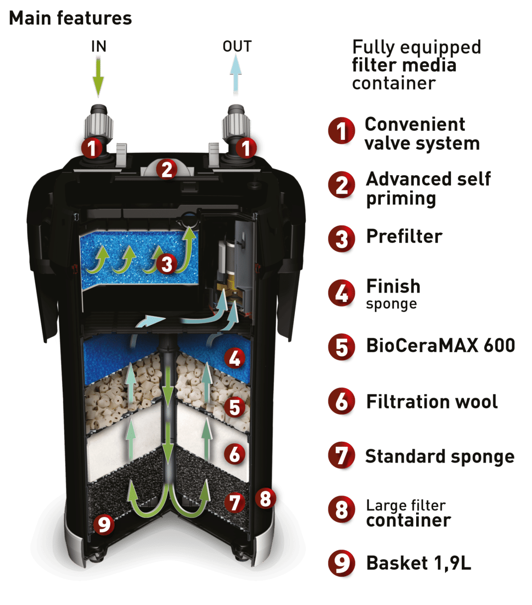 - Easy-to-clean Prefilter: Built-in prefilter for quick maintenance without opening the main canister.