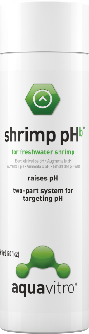 aquavitro® shrimp pHb is one part of a two-part system which aids in replicating the water chemistry found in the native habitats of freshwater shrimp by buffering water to the natural pH for each specific type of shrimp. Used according to directions, shrimp pHb maintains the proper pH parameters of freshwater shrimp while also softening water and supporting growth of plants in shrimp aquaria. shrimp pHb is made from a unique buffer system that is extremely stable and does not add sodium, which can damage plants in the aquarium.
