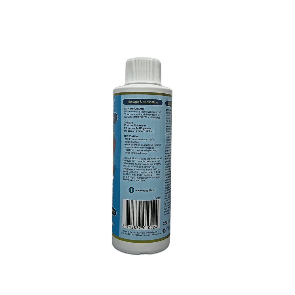 Normal Usage: Add 10 milliliters of Easy-Life Fluid Filter Medium per 30 liters of aquarium water. This can be applied during routine maintenance to improve water quality and promote overall aquarium health.
