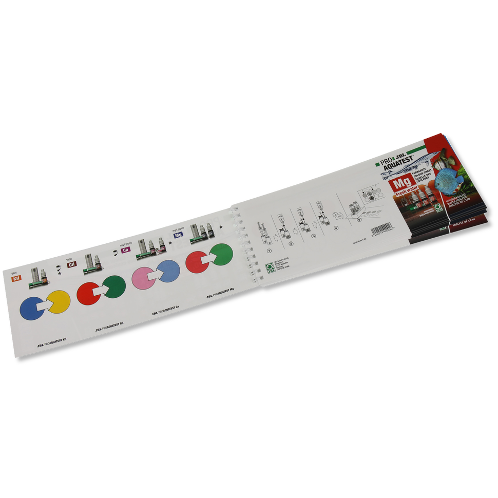 JBL test booklet containing test instructions and colour chart for all current JBL liquid tests. Booklet is ideal for managing test suite with multiple different tests. This booklet is included in all Test Labs and Combi sets and is made with plastic coated water resistant paper.