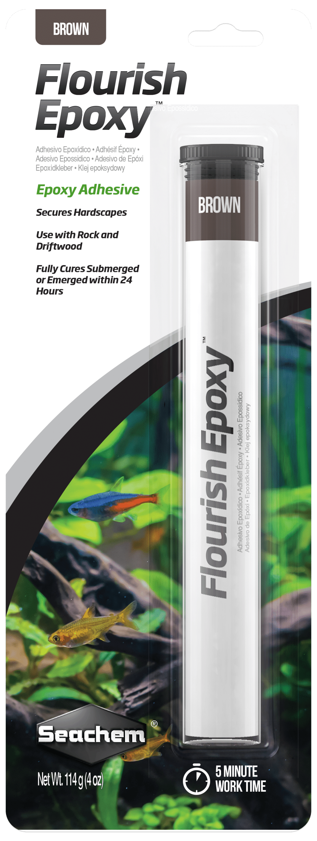 Seachem Epoxy is a two-part adhesive designed for use in both freshwater and saltwater aquariums, providing a strong bond for securing rocks, corals, and decorations. This epoxy works effectively underwater and hardens to form a durable bond, making it perfect for aquascaping and reef-building. It comes in two colors, Grey and Brown, which blend naturally with most aquarium environments.
