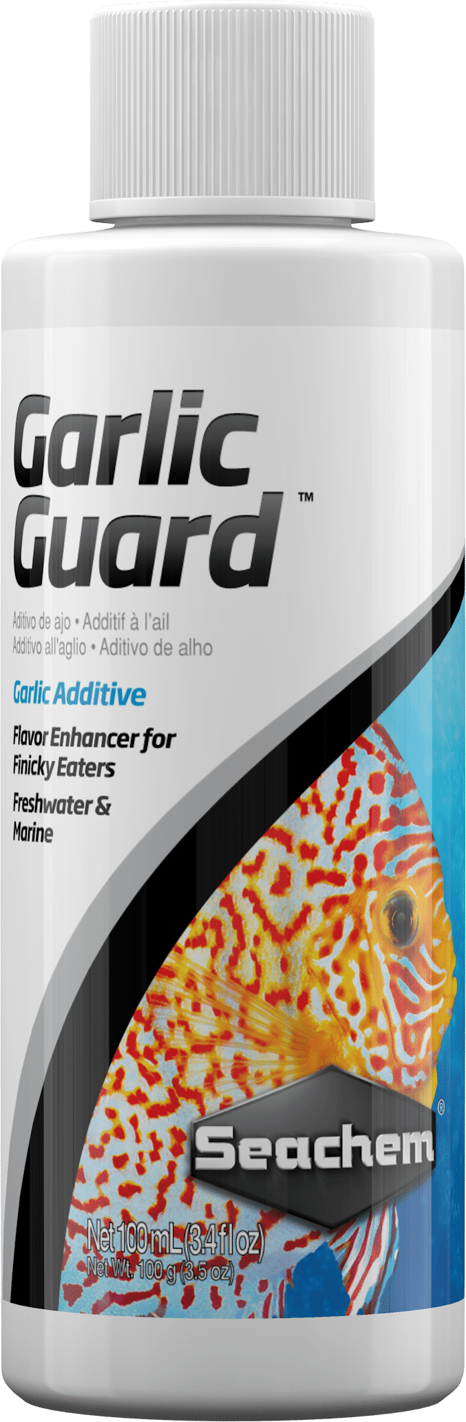 Seachem GarlicGuard is an all-natural product designed to enhance the flavor and appeal of food for freshwater and marine fish. It contains natural garlic extracts, which have been shown to encourage feeding in finicky or stressed fish. GarlicGuard can be added directly to fish food, making it more palatable and enticing, which is especially helpful when introducing new fish or helping picky eaters.