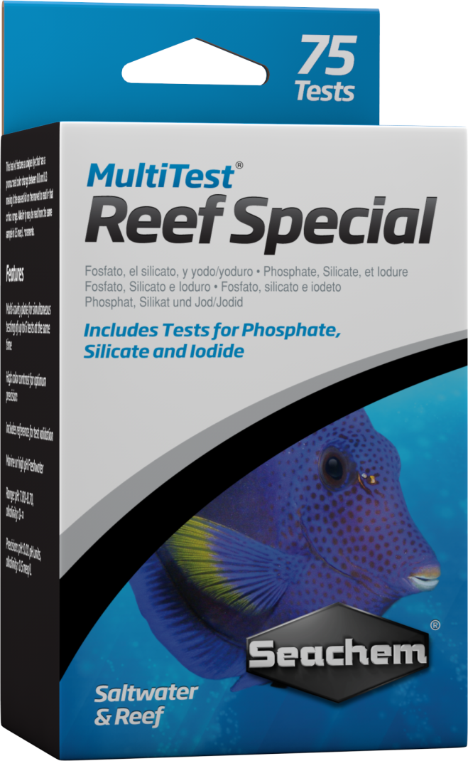 This kit combines the Silicate, Phosphate, and Iodine/Iodide kits into one kit. MultiTestâ„¢ Reef Special performs over 75 tests and contains reference samples for validation.