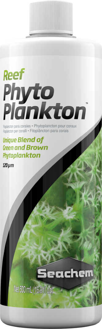 Reef Phytoplankton™ is a concentrated blend of green and brown marine phytoplankton designed to provide the essential fatty acids, proteins, vitamins, amino acids, with biological carotenoids for invertebrate diet. Size ranges from 1-20 μm to feed a broad range of tropical marine aquarium filter feeders and invertebrates.