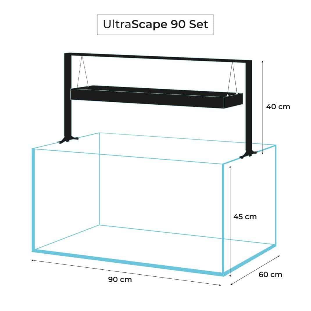 - Ultrascape 90 Cabinet Forest (Snow or Forrest Colour): 90 x 60 x 80 cm (L x W x H), designed to perfectly support the aquarium.