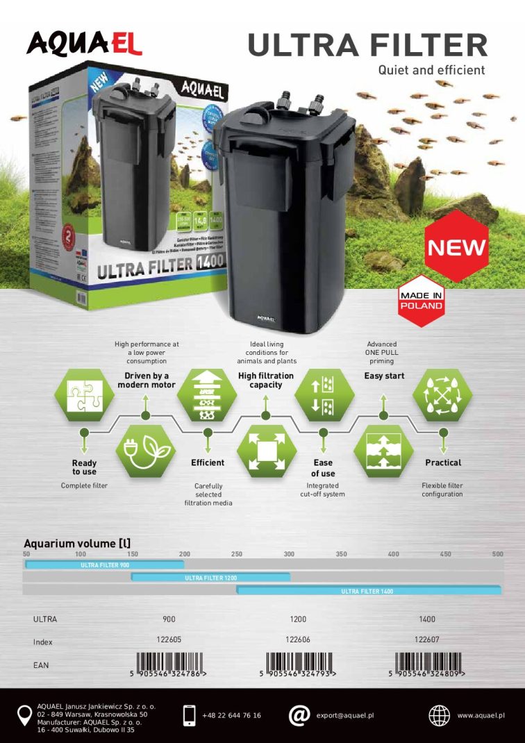 - Filtration: Ultra 1400 Canister Filter, offering efficient mechanical, chemical, and biological filtration.